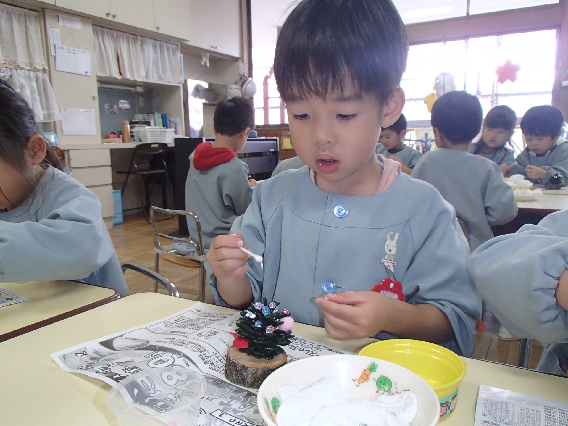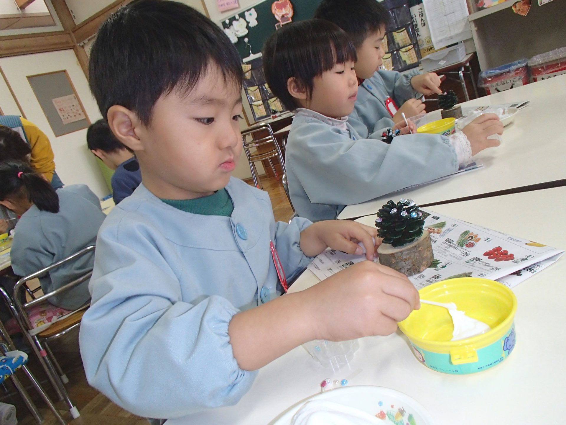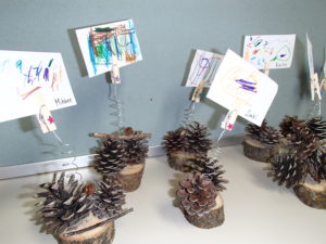 自然のものを使って自分で考え工夫して一つの作品を作りあげる喜びを感じられるようにする