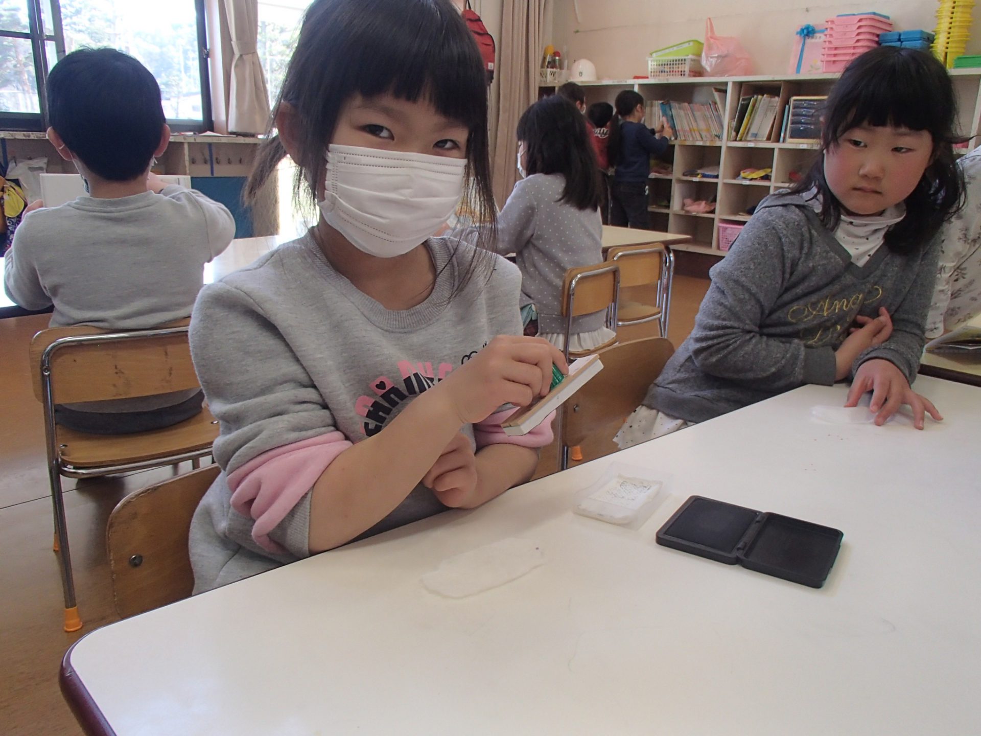 「ちょっと難しかったね~」「きれいにはんこつけたね~ドキドキした」