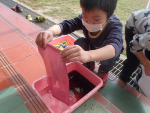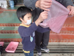 染め物を何度も経験している子ども達なので、なるべく声はかけずに子ども達のやり方に任せました。慣れたものでどんどんやっていました。