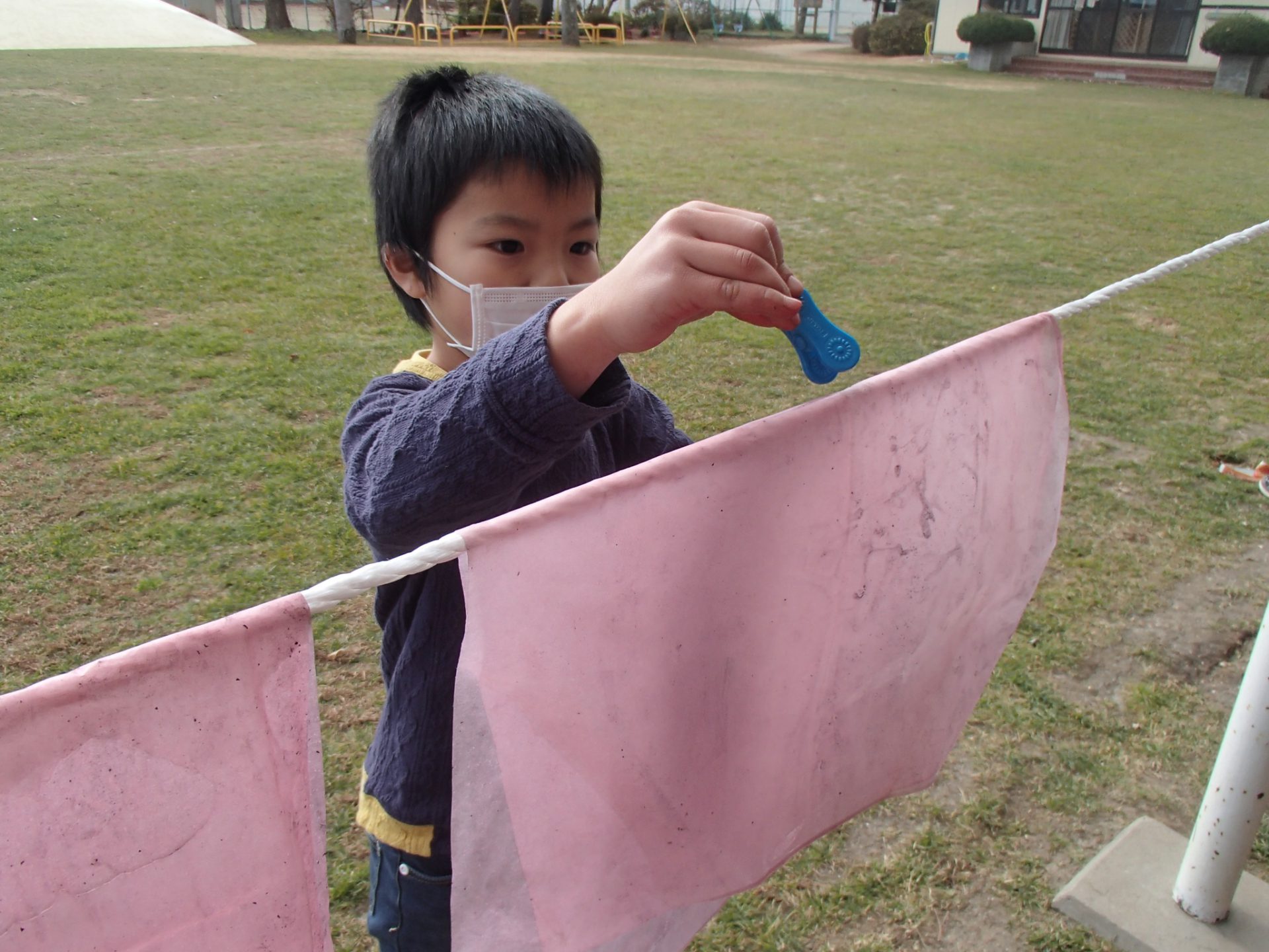 こいのぼり、夏祭りのハチマキ、運動会の万国旗、etc…様々な物を染めてきた子ども達は、しっかりコツを押さえ染め物名人です。