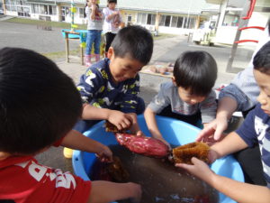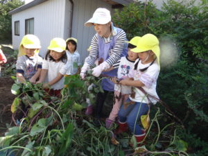 10月 保育園の畑で育てたさつまいもを収穫しました。
