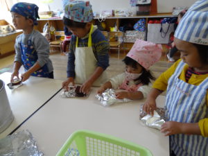 温かい出来立ての、自分たちでつくったやきいもは格別な味になったようです。