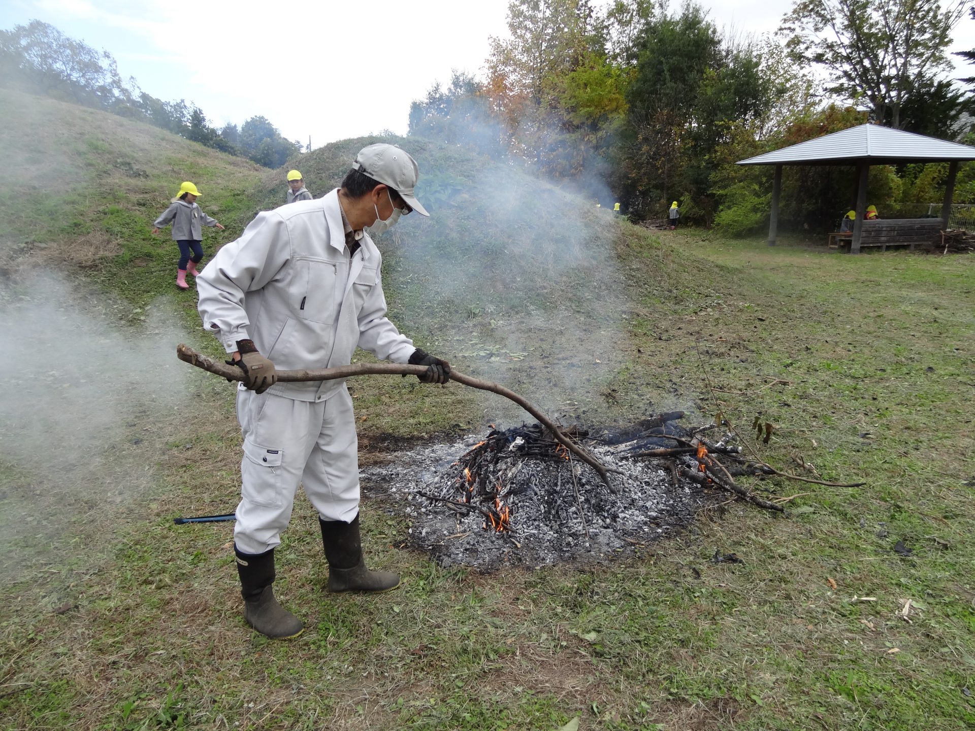 園長先生が焼きいも会のためにあおきっこ広場で火をおこしてくれました。