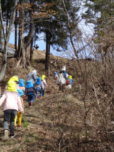 少し急な山道でしたが、あおきっこ広場でいつも駆け回っているあおきっこ達は、どんどん登っていきます。