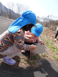 春を見つけると子どもたちの笑顔が広がります。
