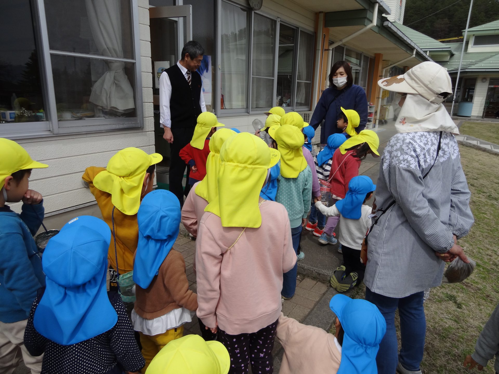 園に戻って、小さいお友だちのクラスまで送ってあげました。