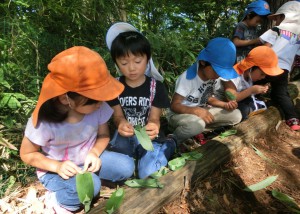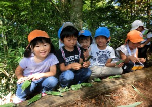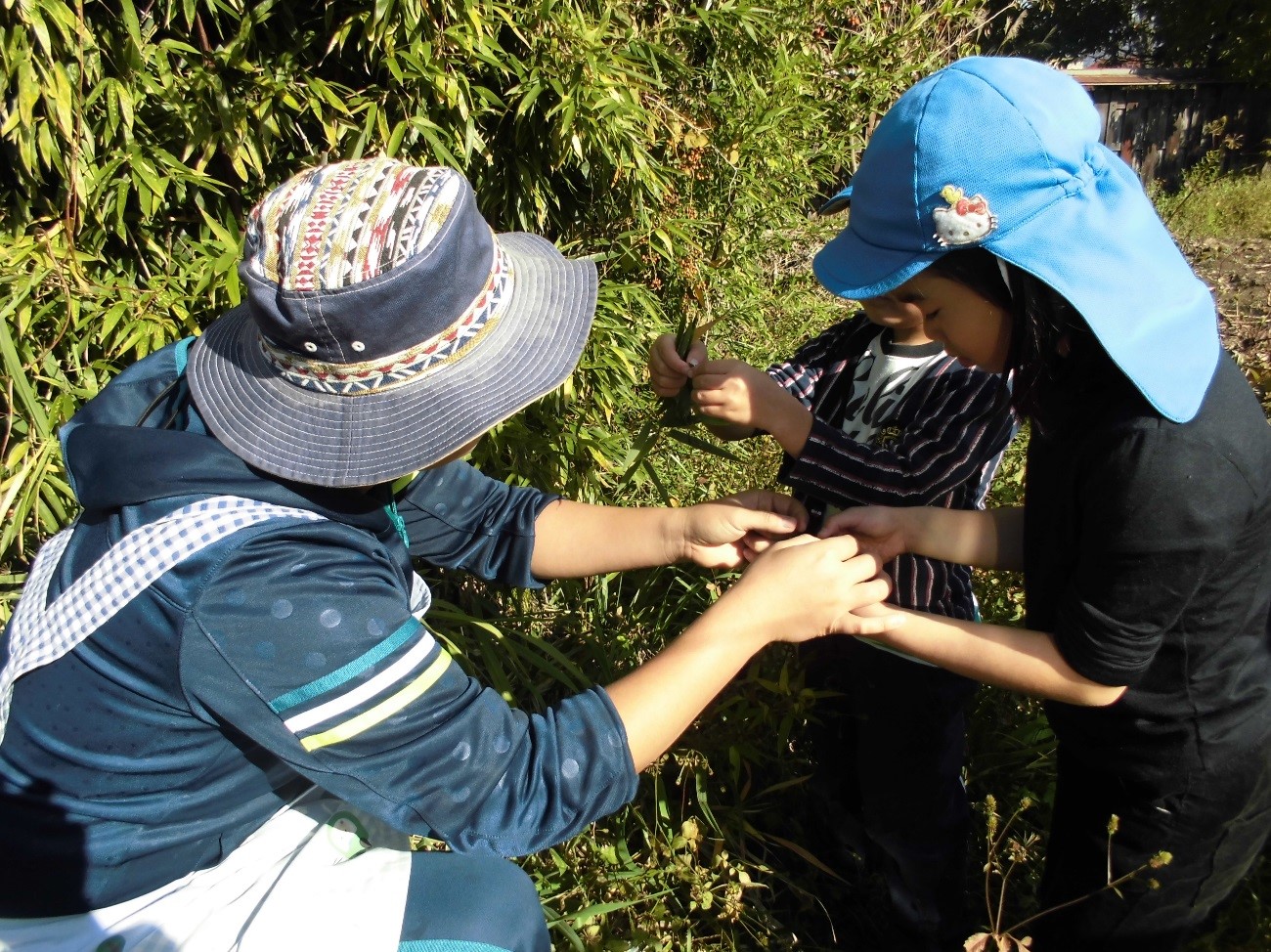 ふと目にとまった笹で笹船を作り出したところ「教えて」と、子ども達も興味をもって集まってきました。