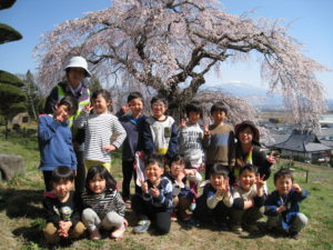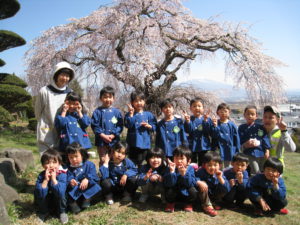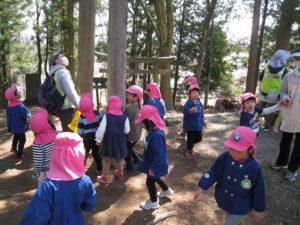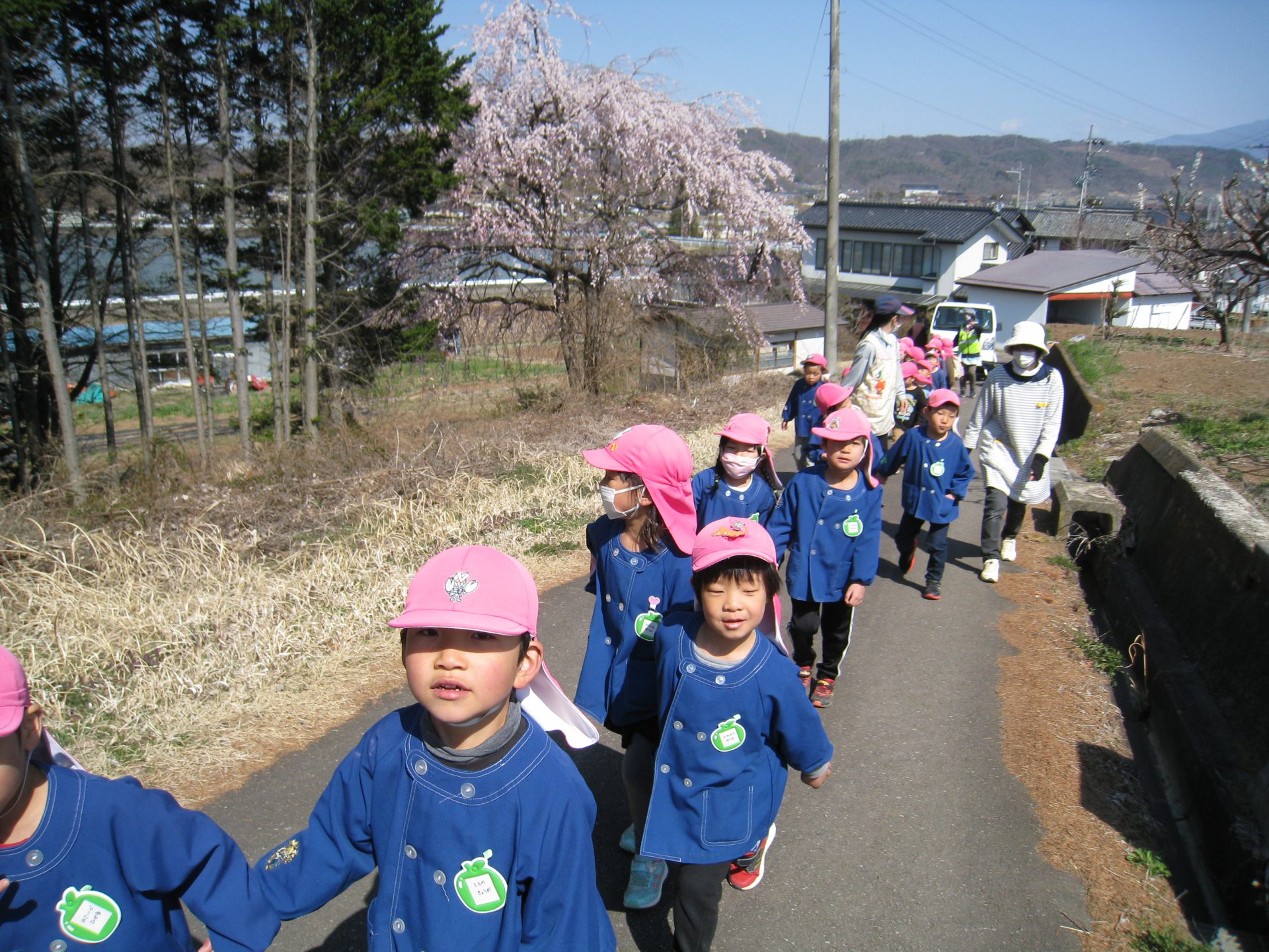 少し距離があるのですが、遠くまで歩ける年長組が今年もお花見散歩に行ってきました。