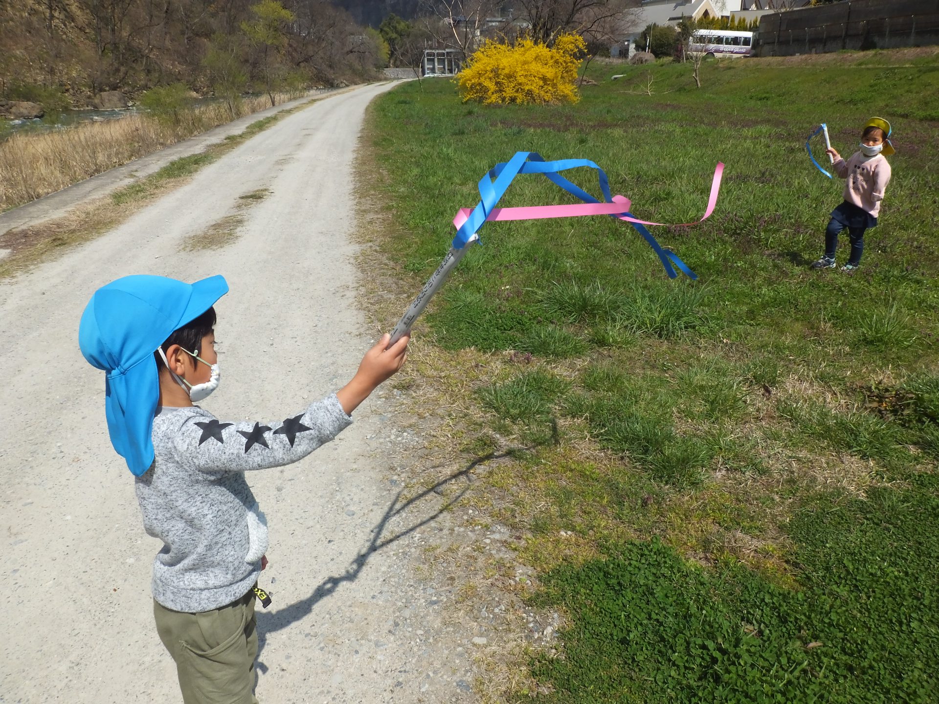 風が吹くことで、物がたなびくことや、その動きのおもしろさに気付くことができました。