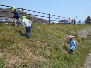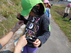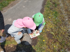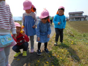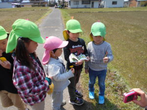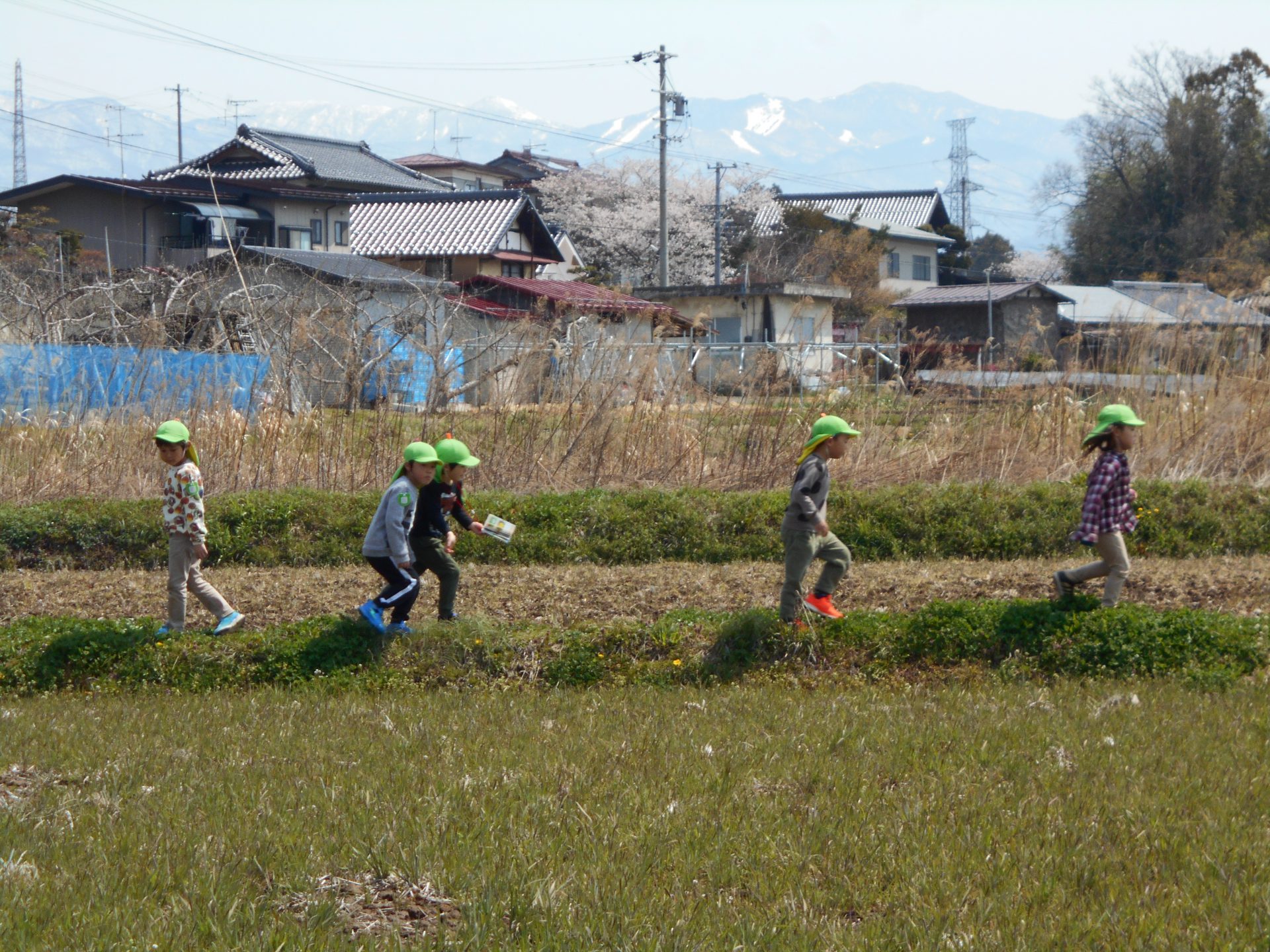 いっぽっぽコースで春探し。年長さんと散歩に行くのは初めてです。