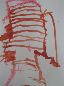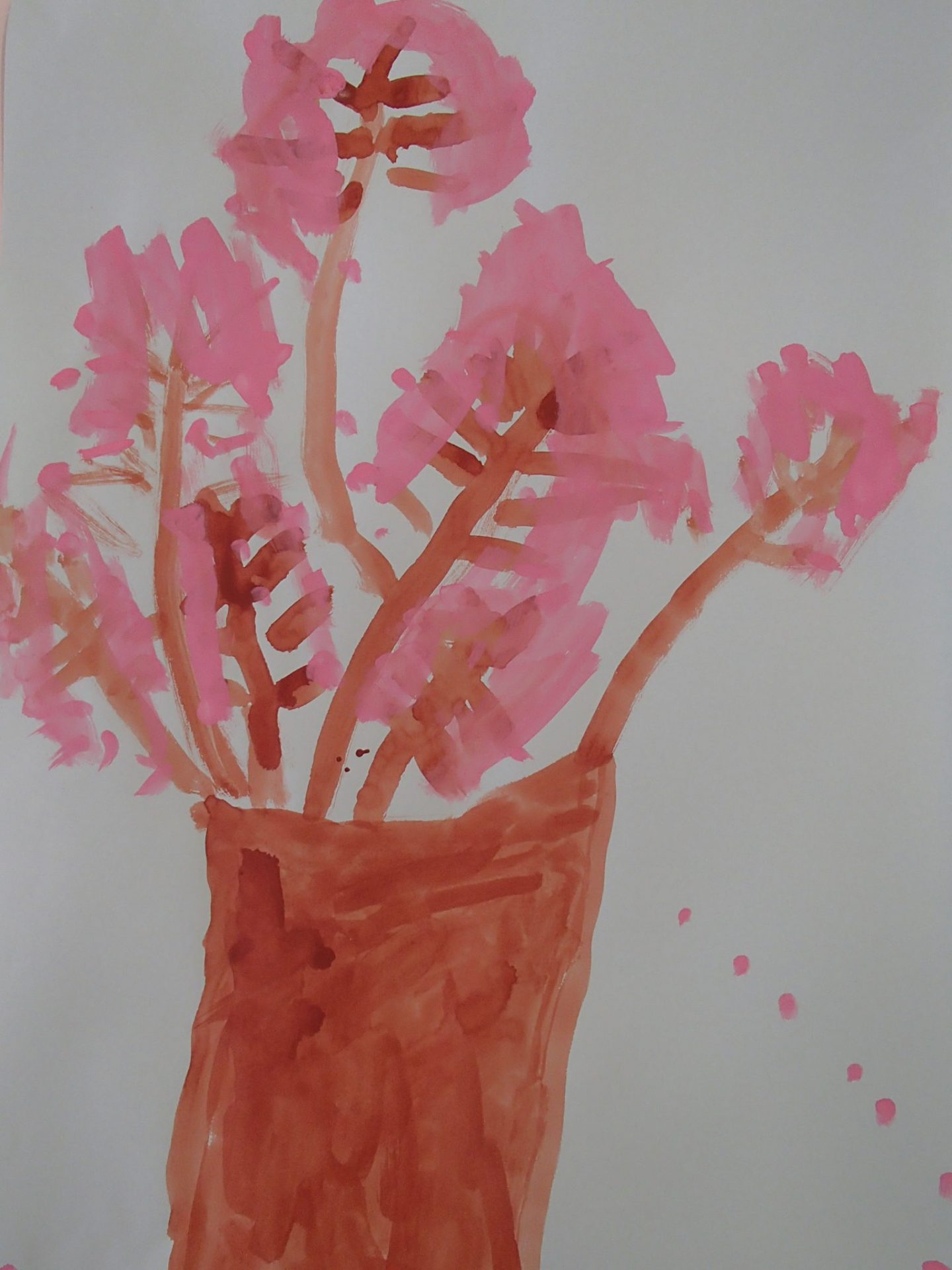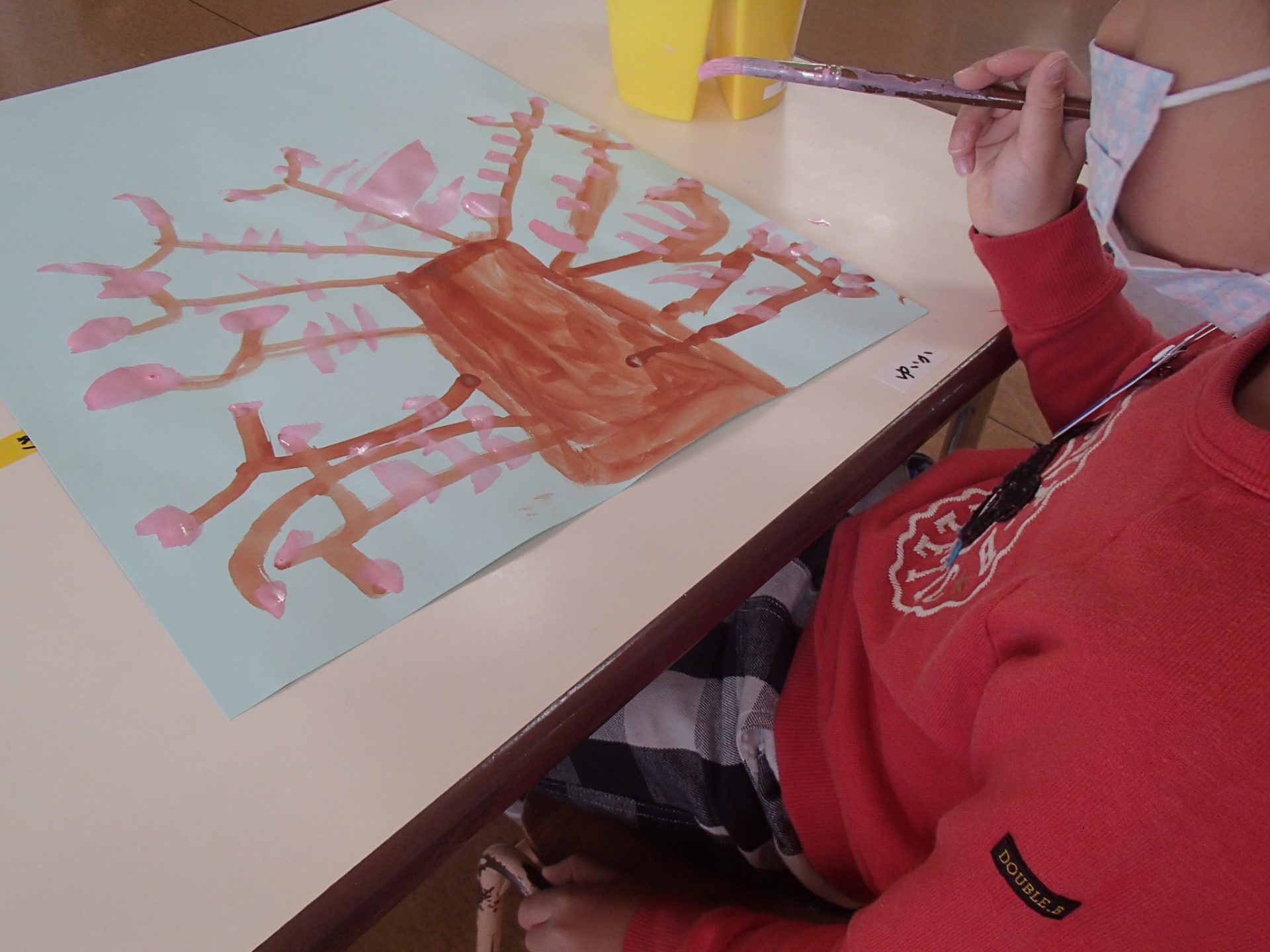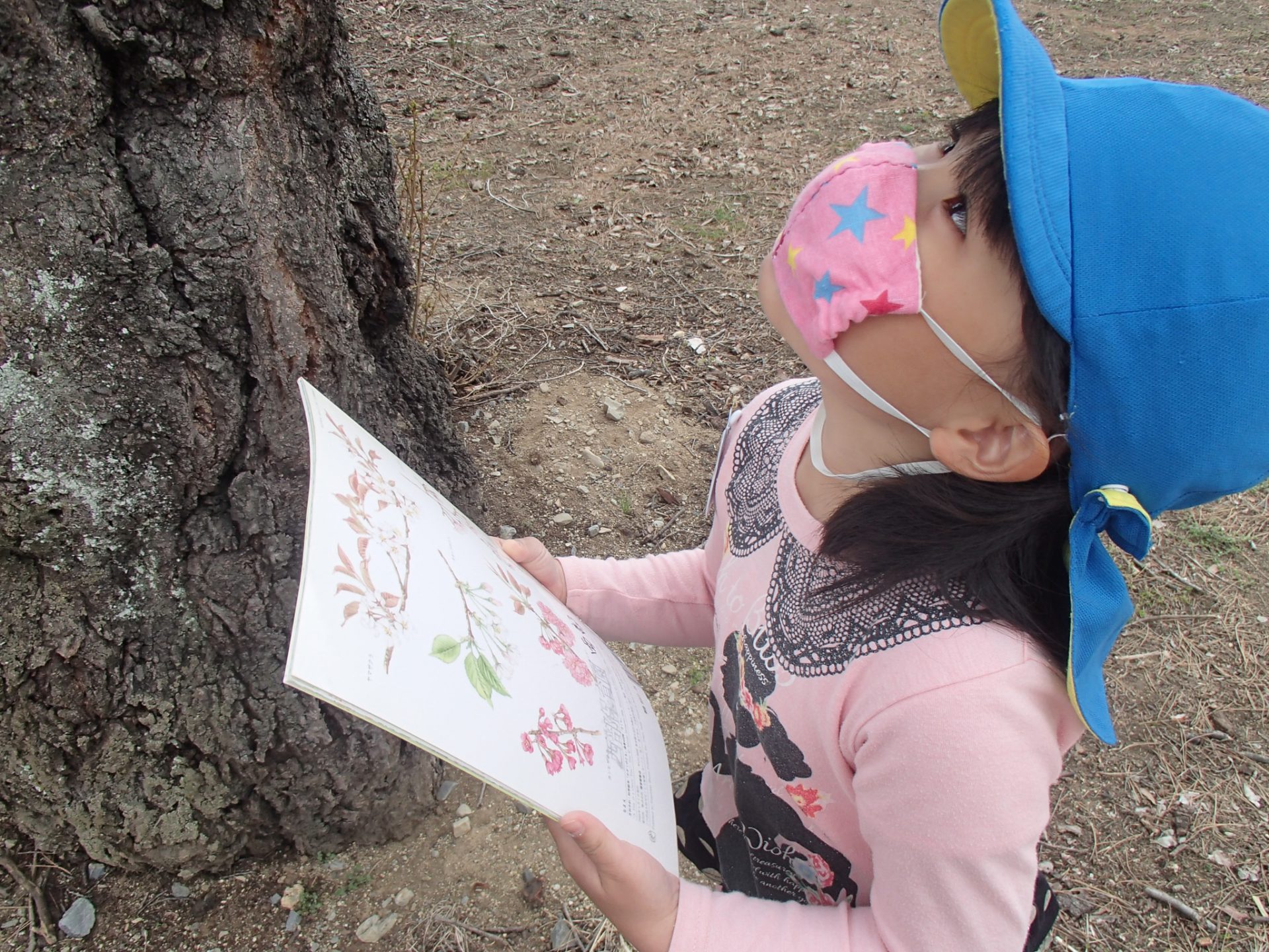 「木は太くて茶色~、花は可愛いピンク~」「太い木にはしましま模様もあったよ~」「花びらも少し落ちていたよ」「つぼみもあったから描いとこ・・・」