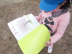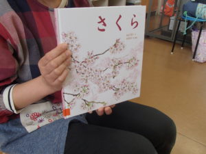 散歩の前日に”さくら”の絵本を見ました。桜の一年間が描かれていて、子ども達も真剣に聞いていました。