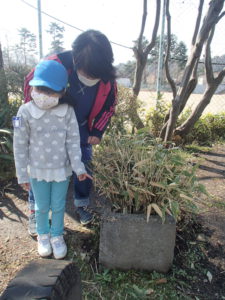 保育士「新しい枝が出てきて、これから大きくなって花が咲くんだね。楽しみだね」