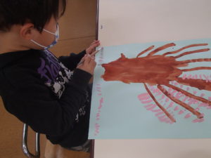 園に戻り、早速絵を描きました。実際に見た桜の色や形など特長を思いだしながら、筆を持ち大胆に描き始めました。