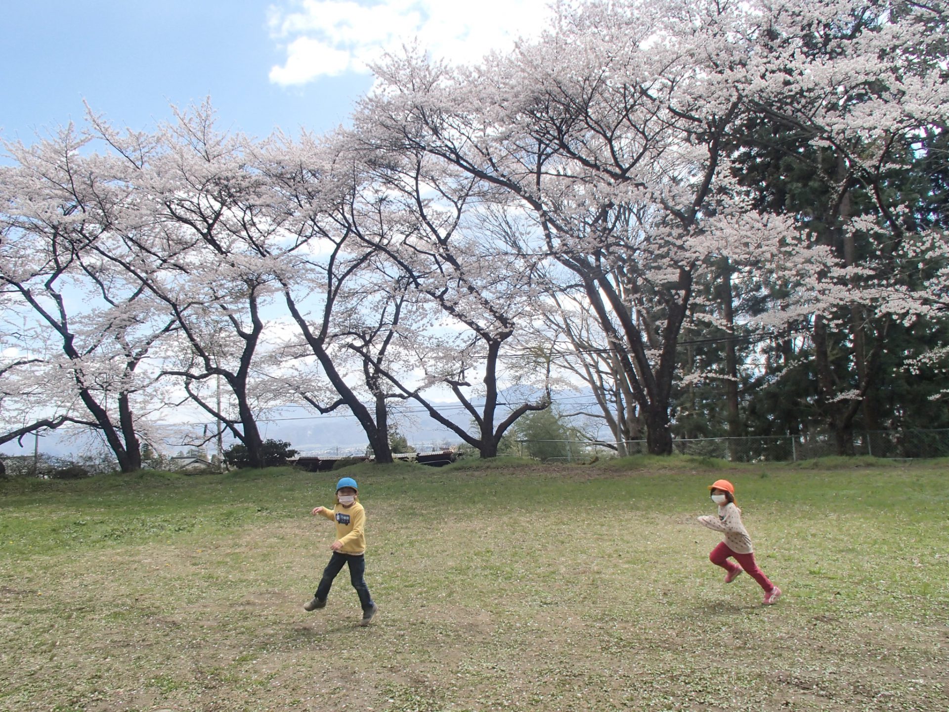 近くの公園に散歩に行きました。大喜びでお花見をしたり、桜満開の下で思いきり体を動かしたりして遊びました。