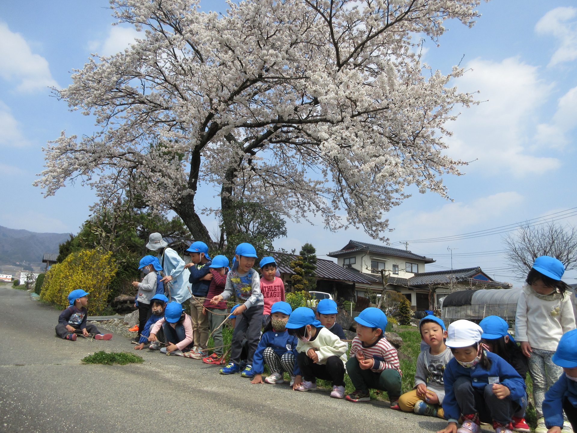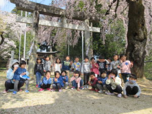 ・園にある桜と神社にある枝垂れ桜の違いに気づき、「桜の雨だ~。」と声をあげていた。