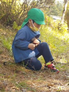 自分たちが発見したもの、取ったものをキラキラした笑顔と大きな声で伝えてくれる子どもに共感すると、「よし!また次のものを探そう!」という意欲に繋がっていくんだなぁと子どもの姿をみて思いました。