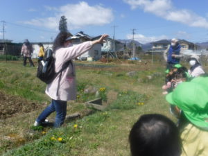 地域でお世話になっている沢柳さんの畑へよもぎ摘みに行きました。