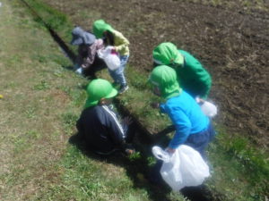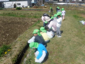 また畦道を歩いたり、出てからジャンプしたりと園庭では経験できない貴重な体験ができました。
