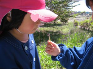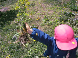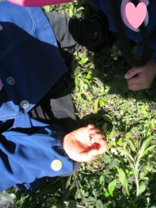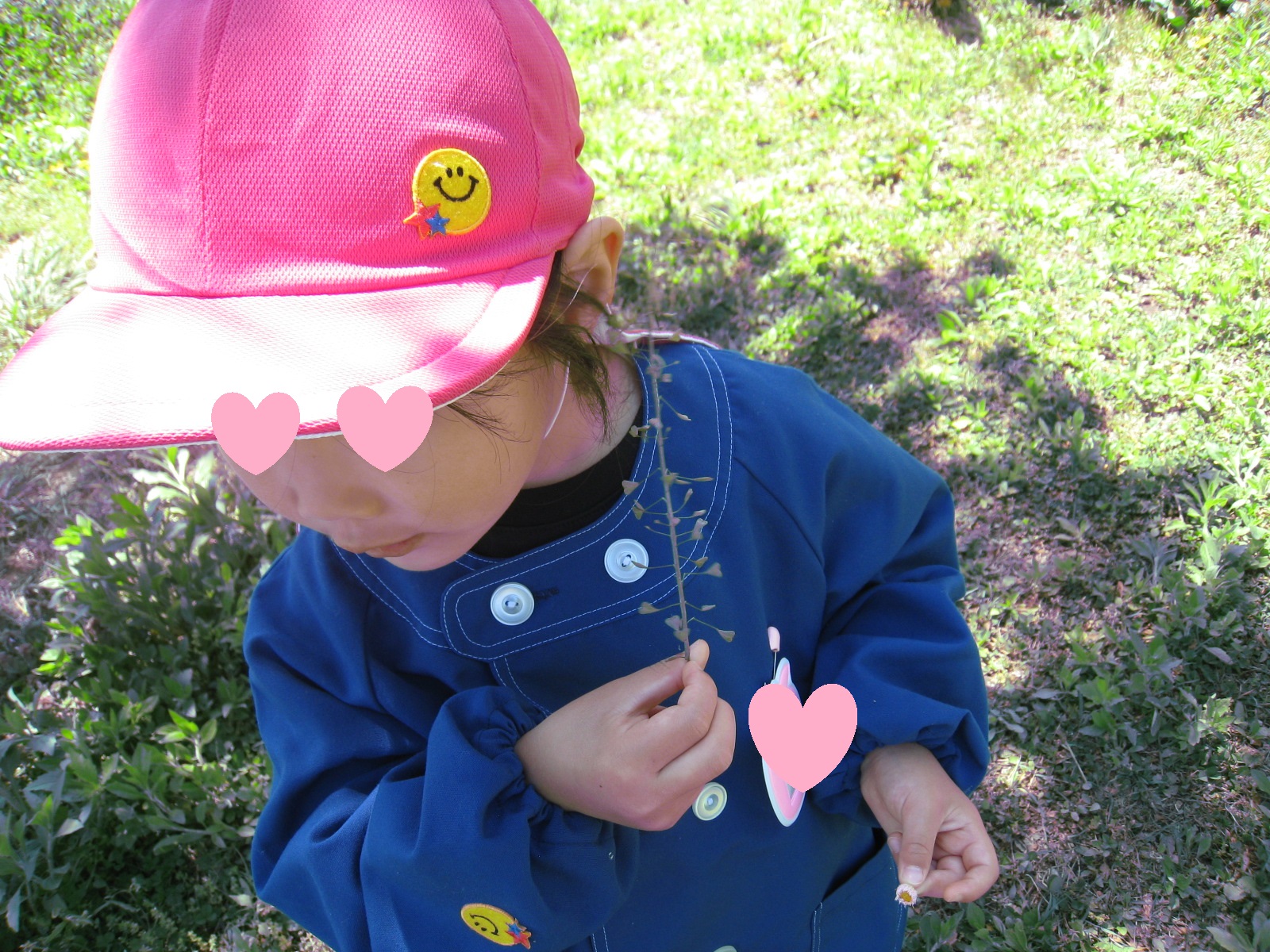 昨日のおたよりで草花遊びの紹介があり、やってみることに…
