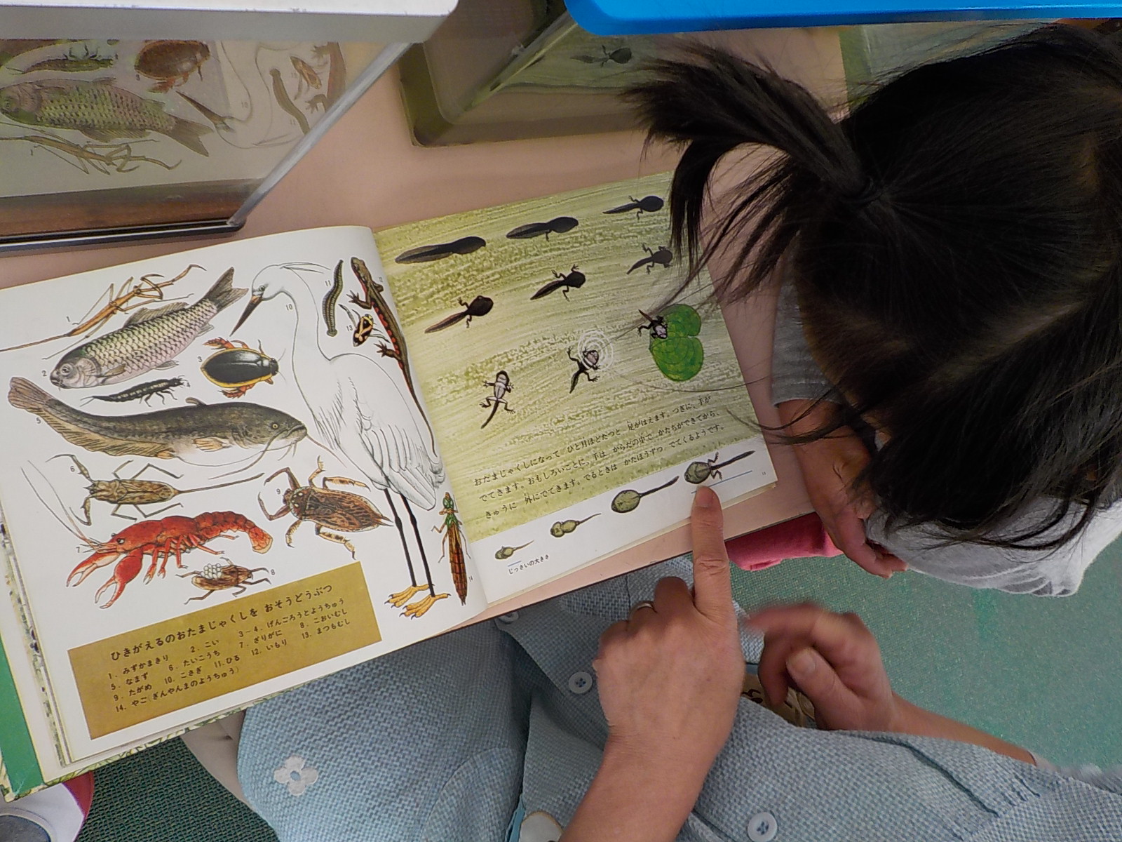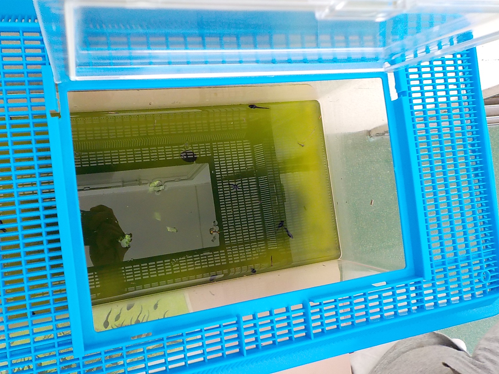 園に帰って飼育箱に入れました。そして連休前にはオタマジャクシになり…