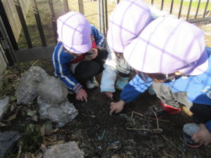 ・冬の自然に触れ、気づいたことを保育士や友達と伝え合う