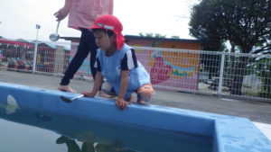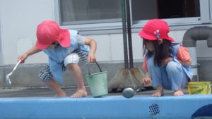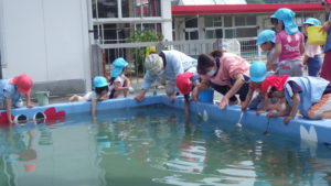・プールの中の小さいおたまじゃくしを子ども達はよく見て捕まえることができたと思いました。