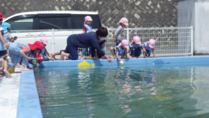 プールに落ちた子はいませんでしたよ。さすが山本保育園の子ども達です。