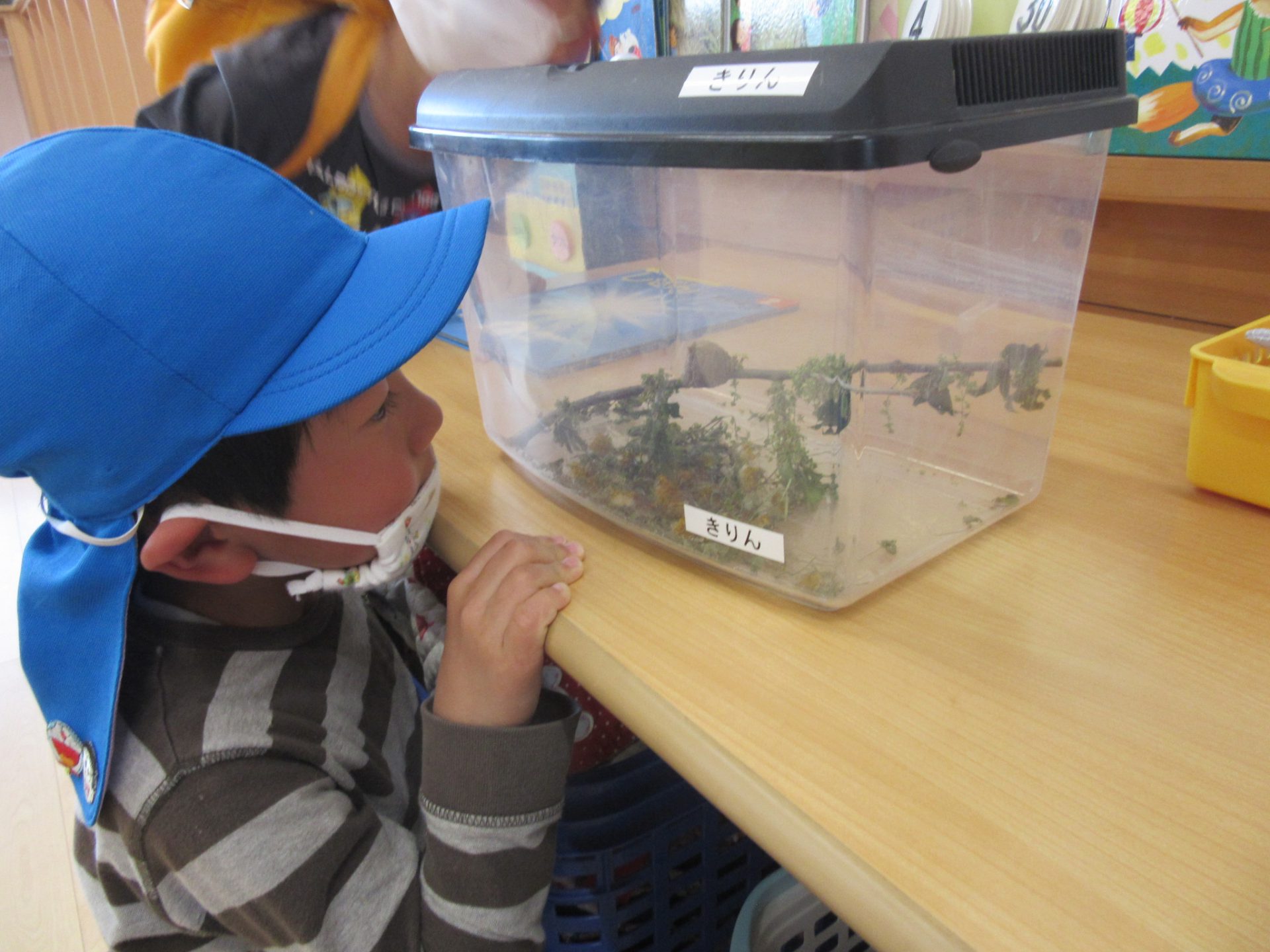「はやく うまれないかな~。」と言いながら、虫かごをずっとながめていました。