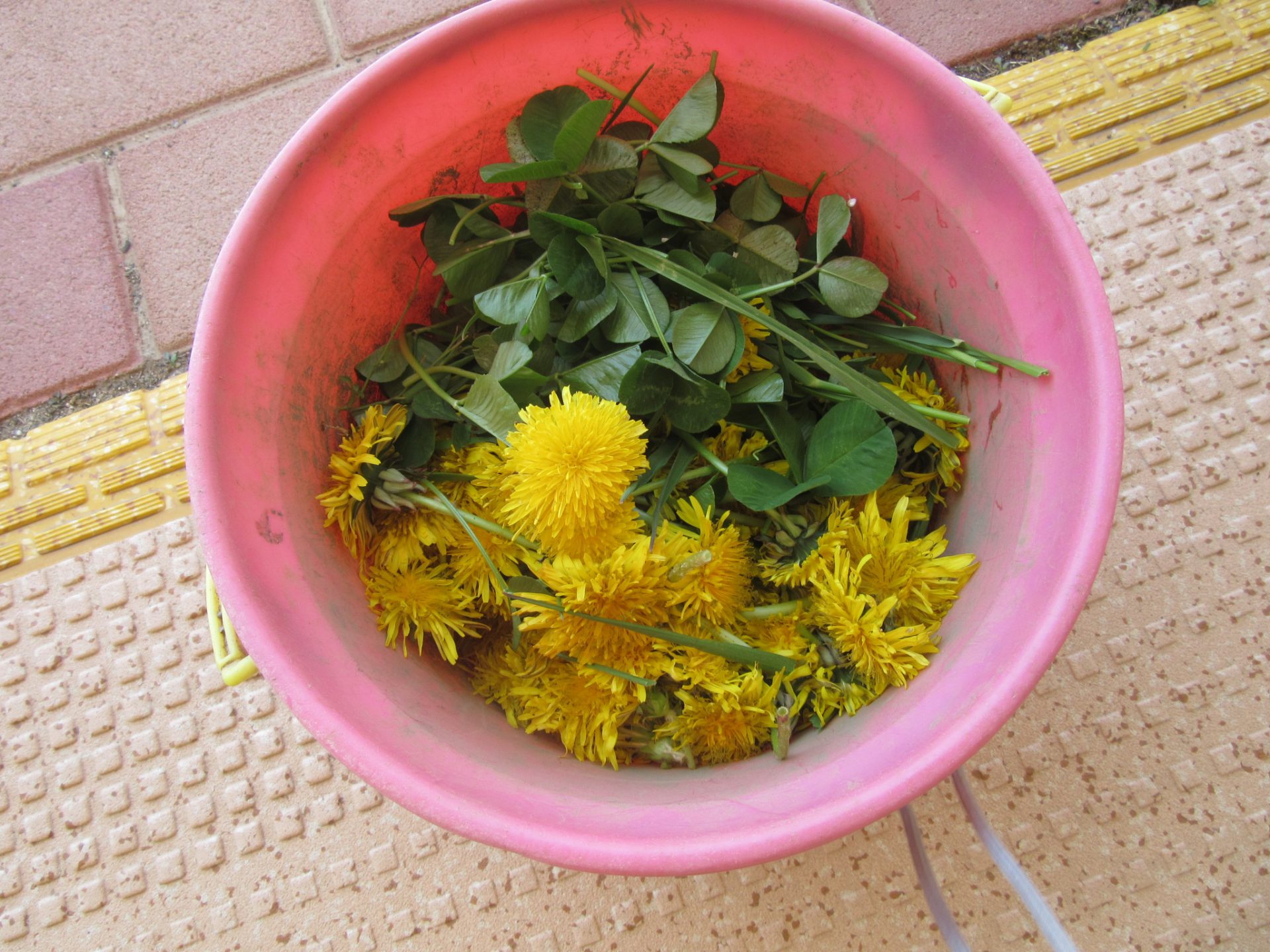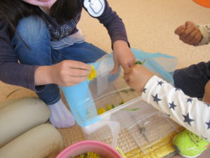 すると、園庭に行きタンポポやクローバーを集めてきて虫かごの中に入れ始めました。