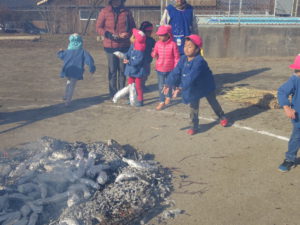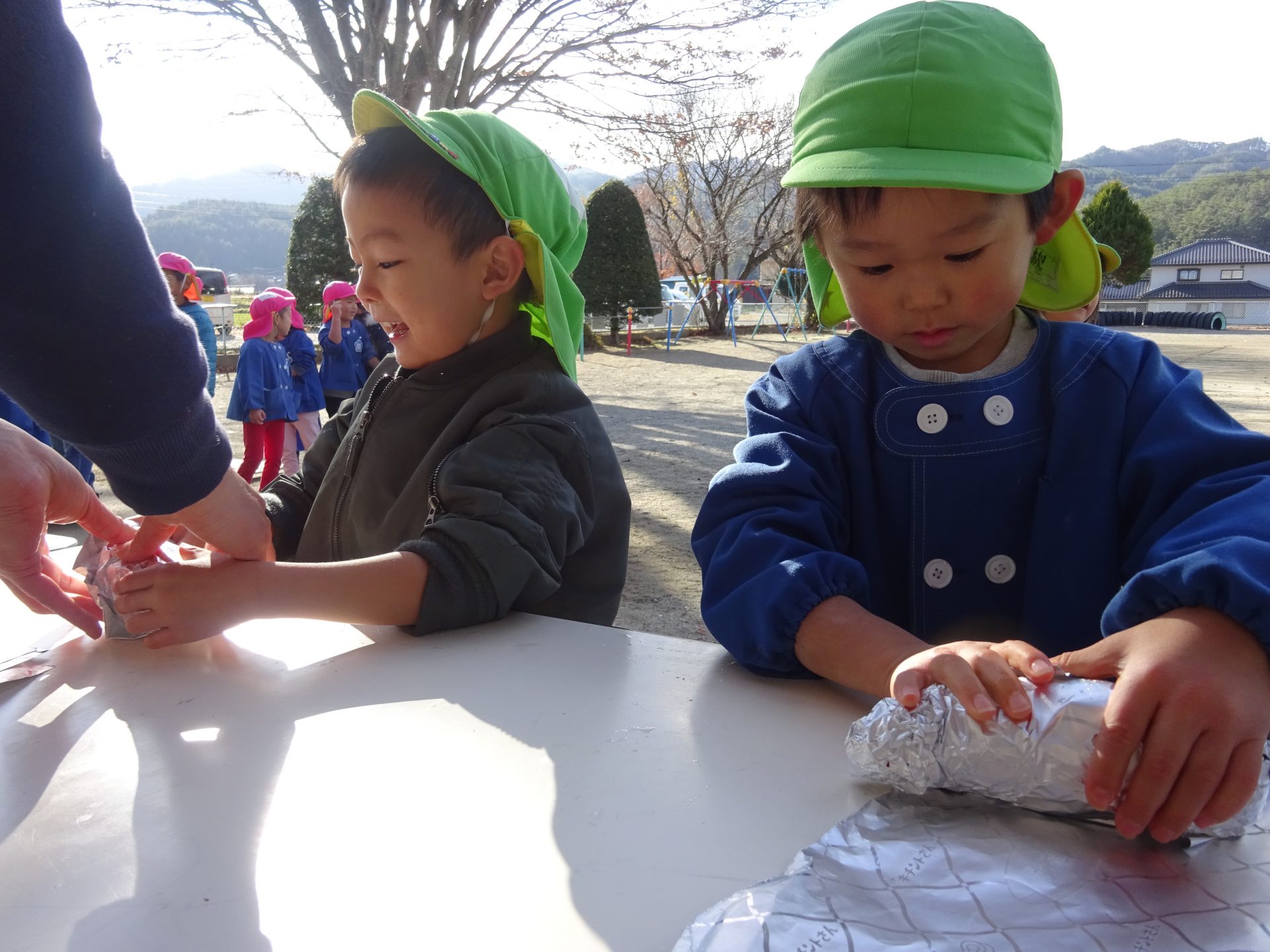 ・自分たちで苗を植え、収穫したサツマイモをみんなで焼いて
