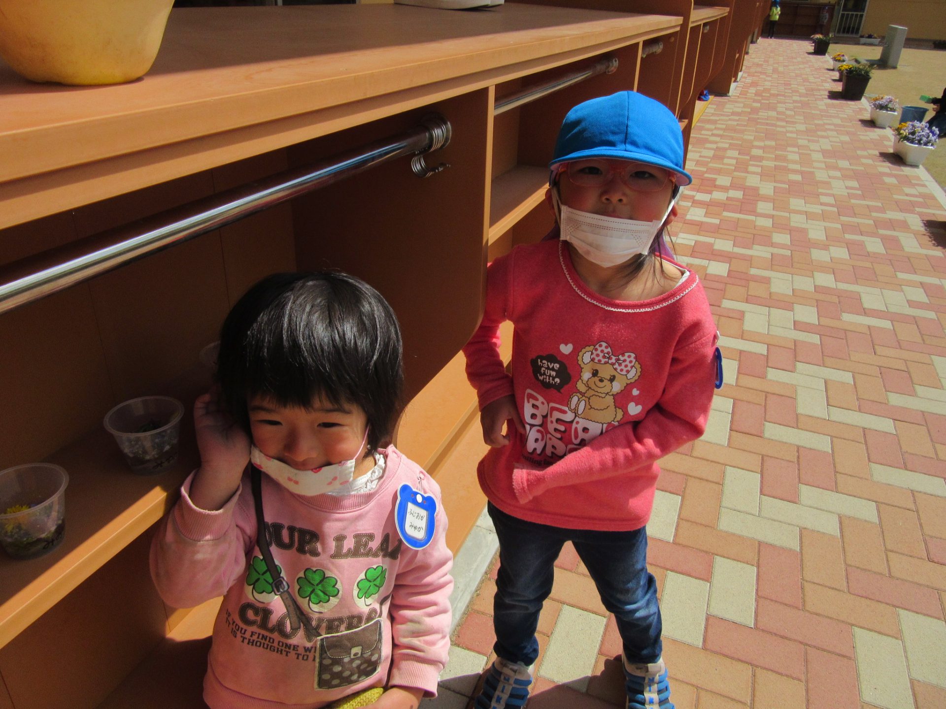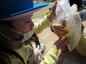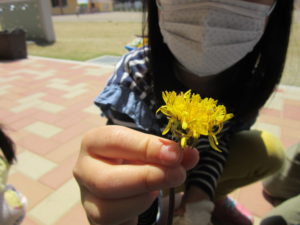 園庭で遊んでいると、色々な花や草花を発見した子ども達。