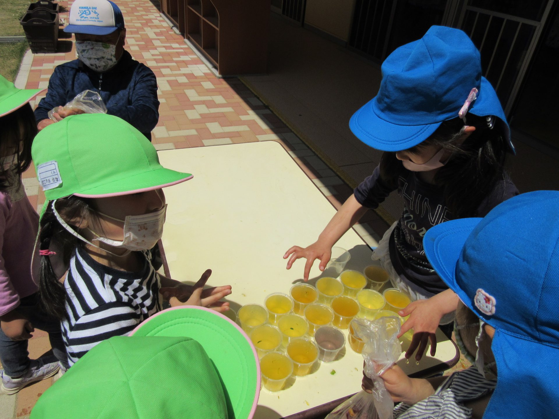 美しい色のジュースみて、想像をふくらめ話す子ども達でした。