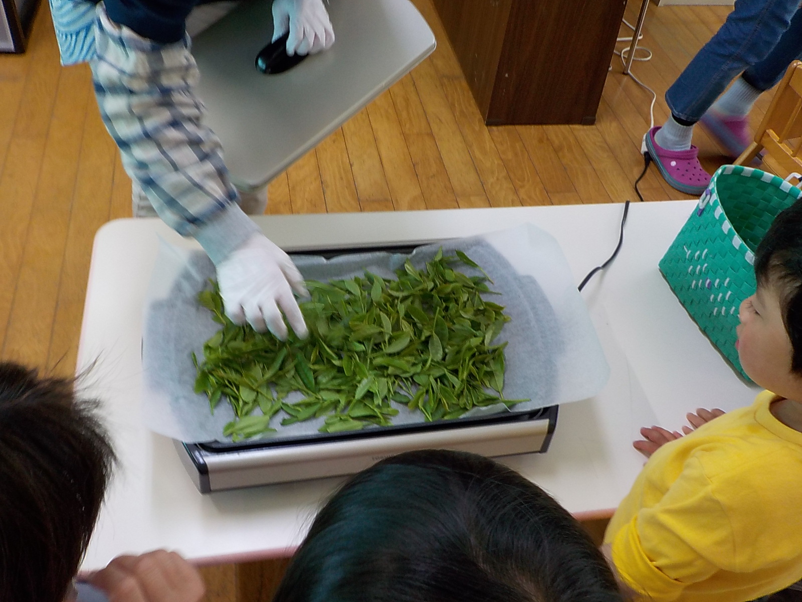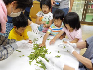 今年も上町に住む熊谷先生にお茶の葉摘みを教えていただきました。更に今年度は蒸したりもんだりする行程も教えていただきました。