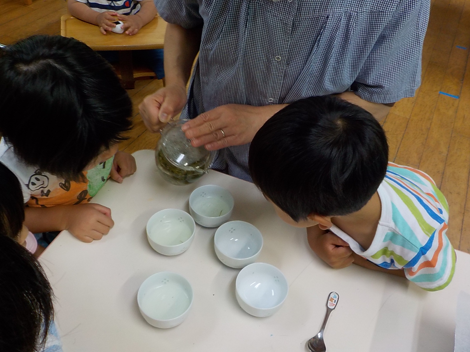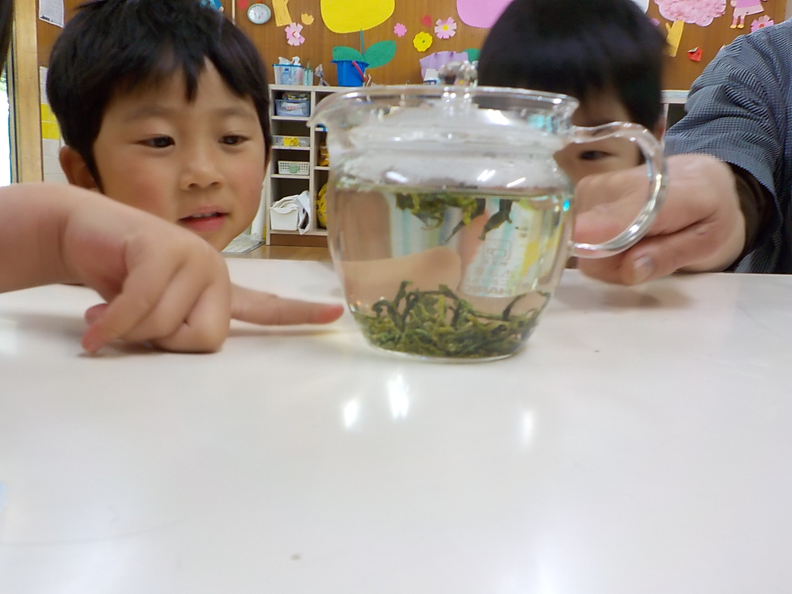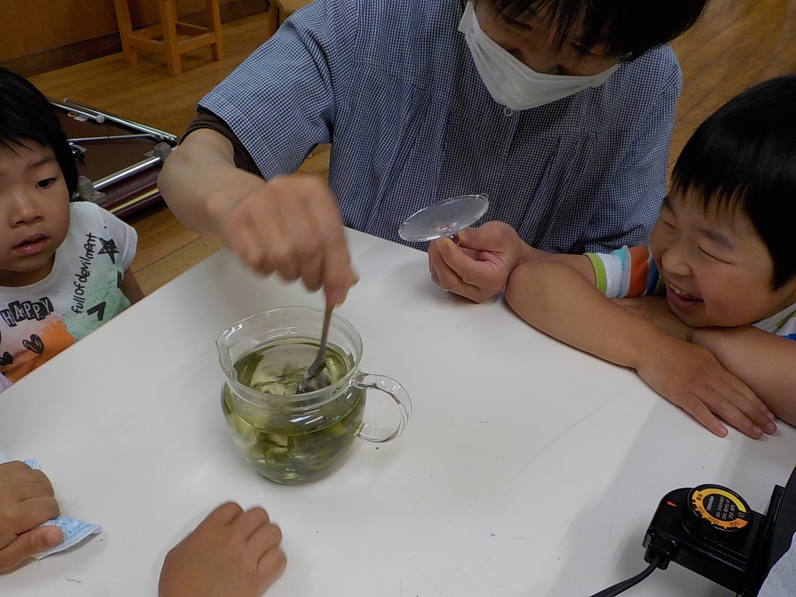 「混ぜたら色が変わったね」 「お茶の色だ」