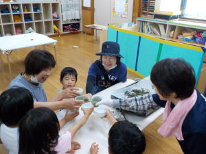 待っている間、「茶摘み」をみんなで歌って楽しみました。