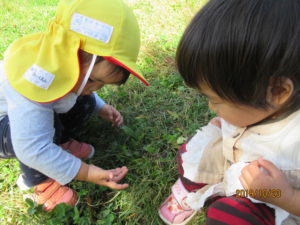 子どもたちが大好きなてんとう虫を見つけ観察しようとする