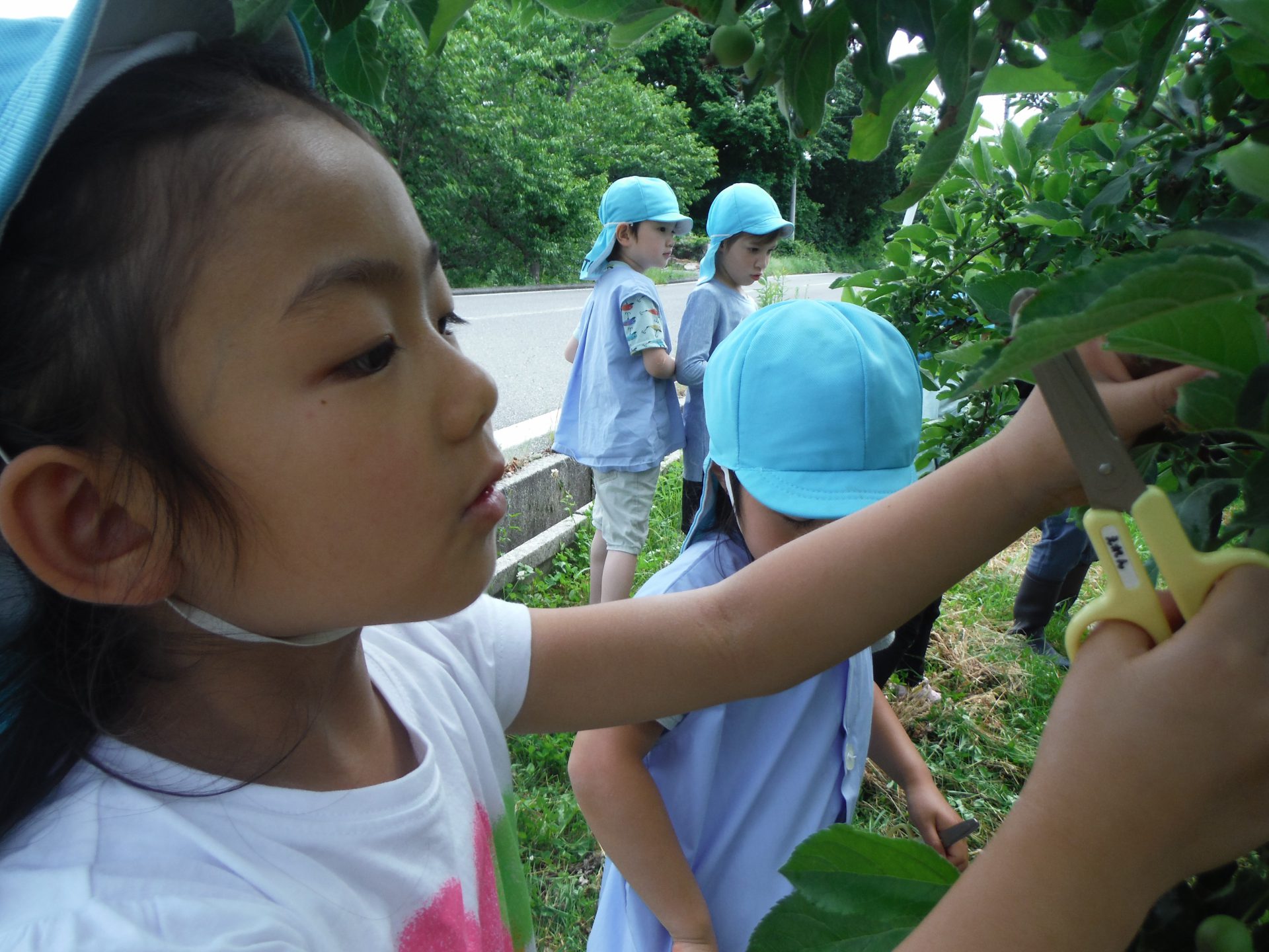 子ども達に摘果することの意味ややり方を教えてくださいました。