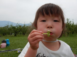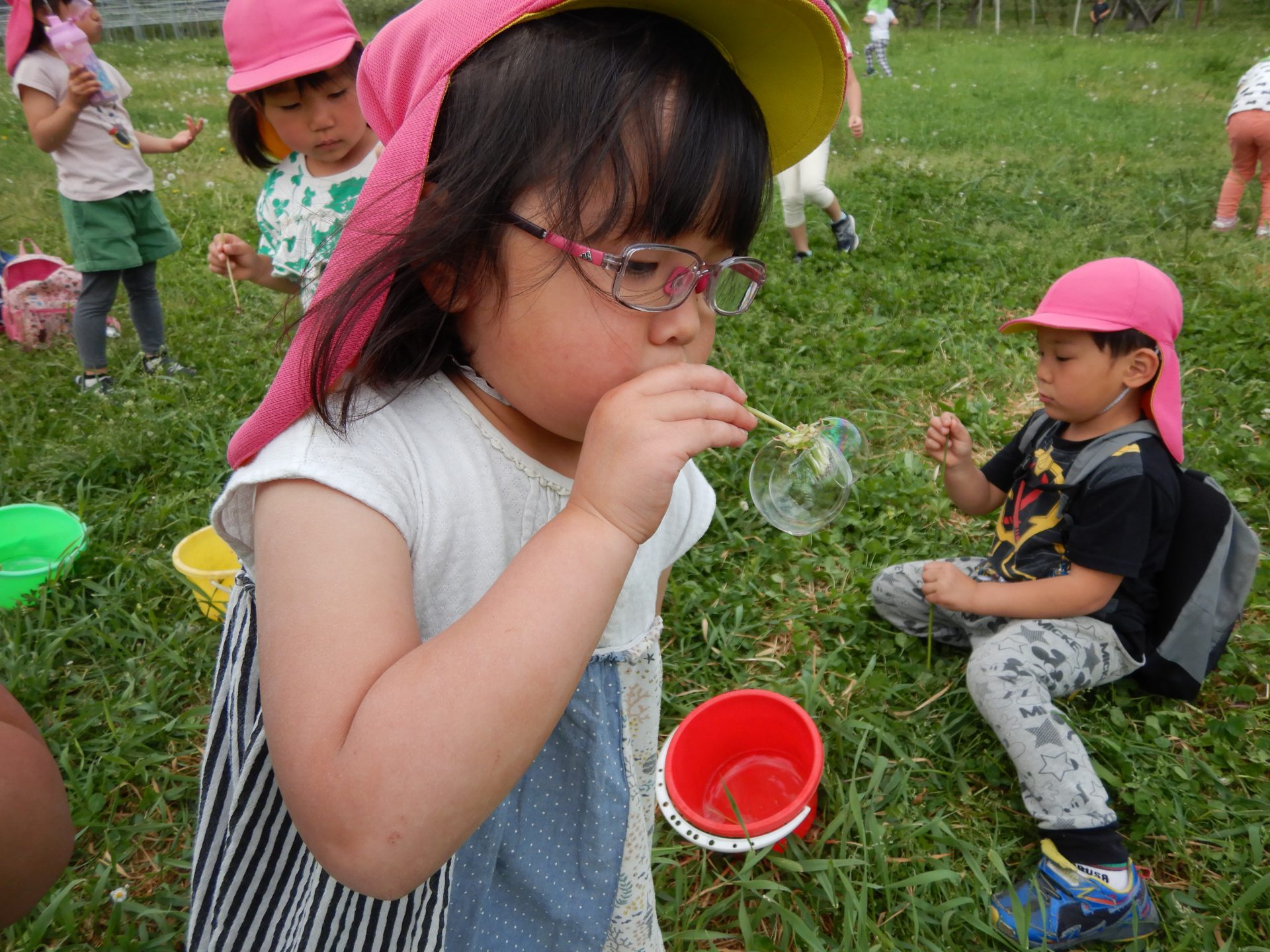 今年も近くの原っぱでシャボン玉遊びをしました。