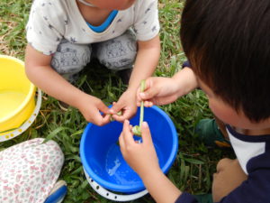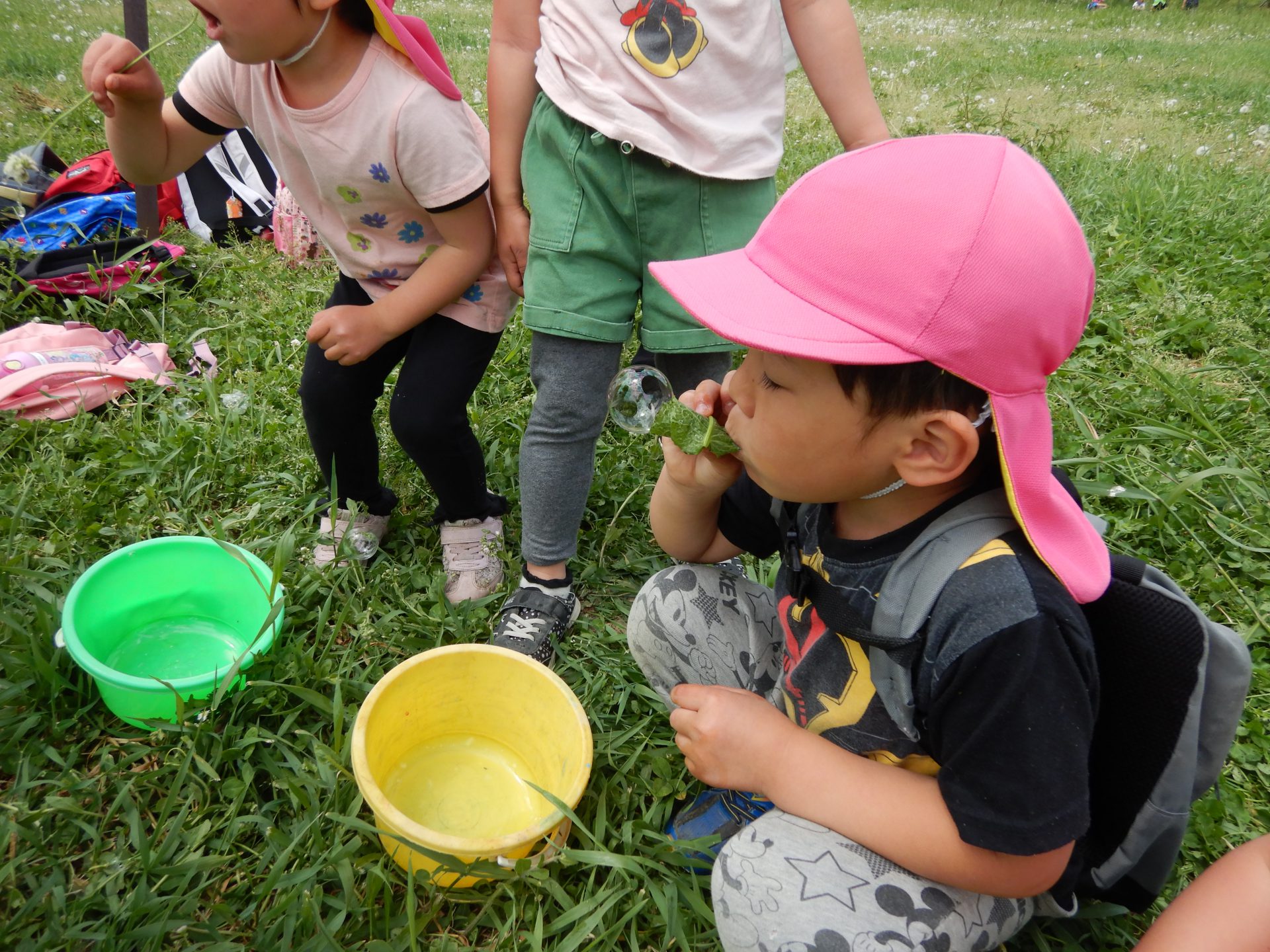 いろんな草花で試し、シャボン玉遊びを楽しんでいた子どもたちでした。