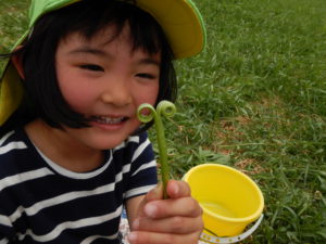 液体にタンポポの茎をつ浸けるとクルクルと丸まるという特徴に気が付き、その面白さを発見した子どもたちでした。