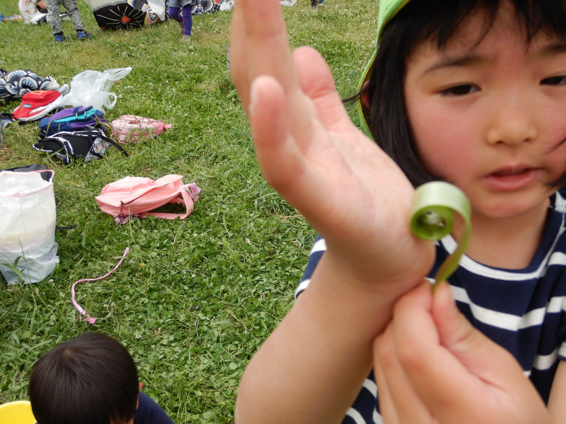 4、5歳児の遊ぶ様子を見て3歳児も真似てみたり、年長さんに教えてもらったりして楽しみました。