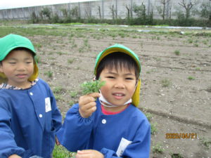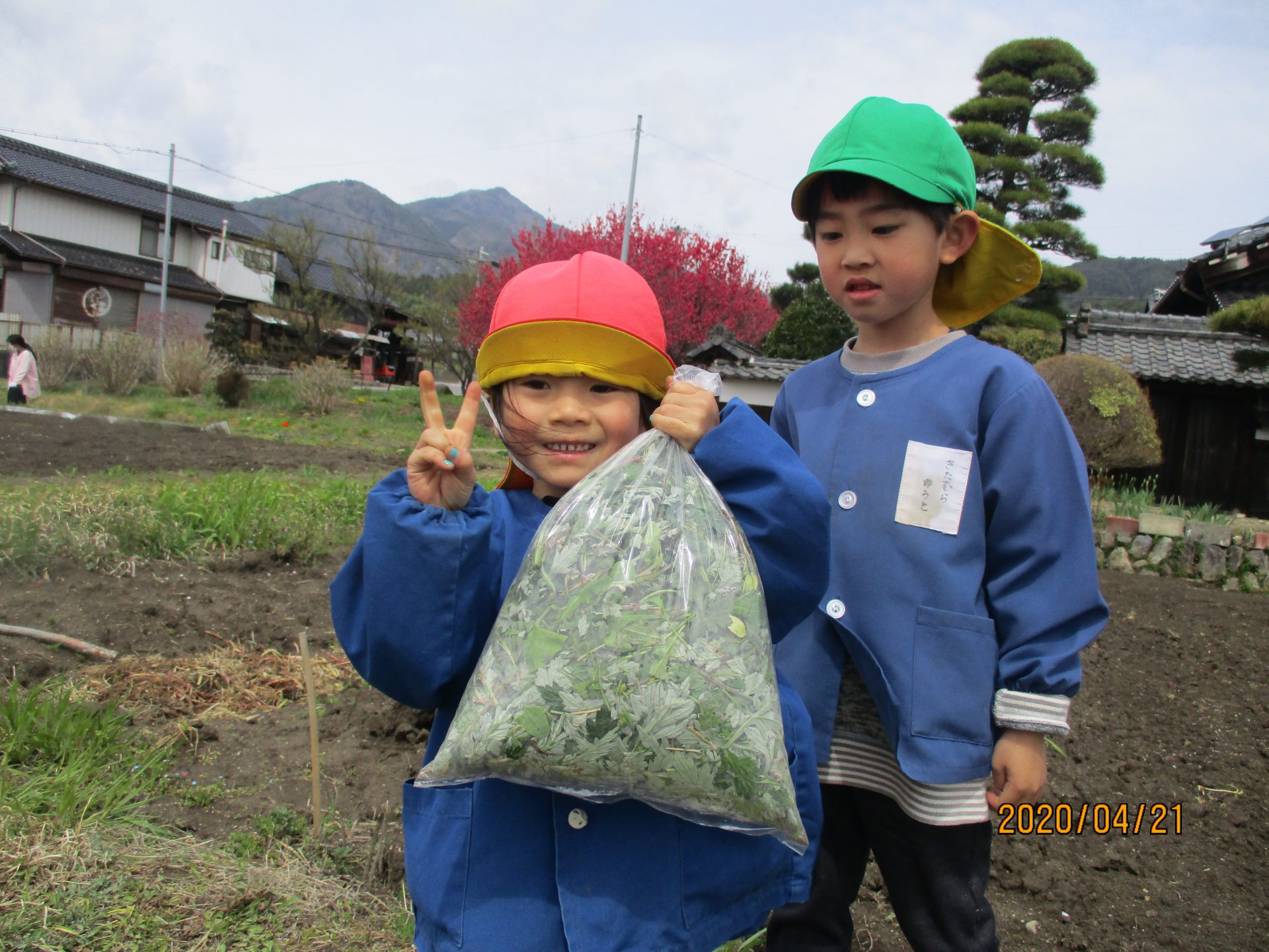 給食先生によもぎおやきを作ってもらうためによもぎ採りへ!
