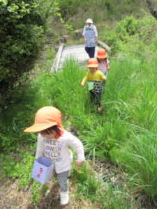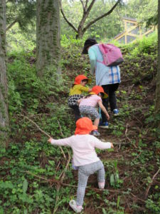 お散歩に行き慣れた森沢ですが、遠足でいつもより時間に余裕があり、少し冒険(いつもと違う所)も楽しめ、坂道もしっかり歩けました。