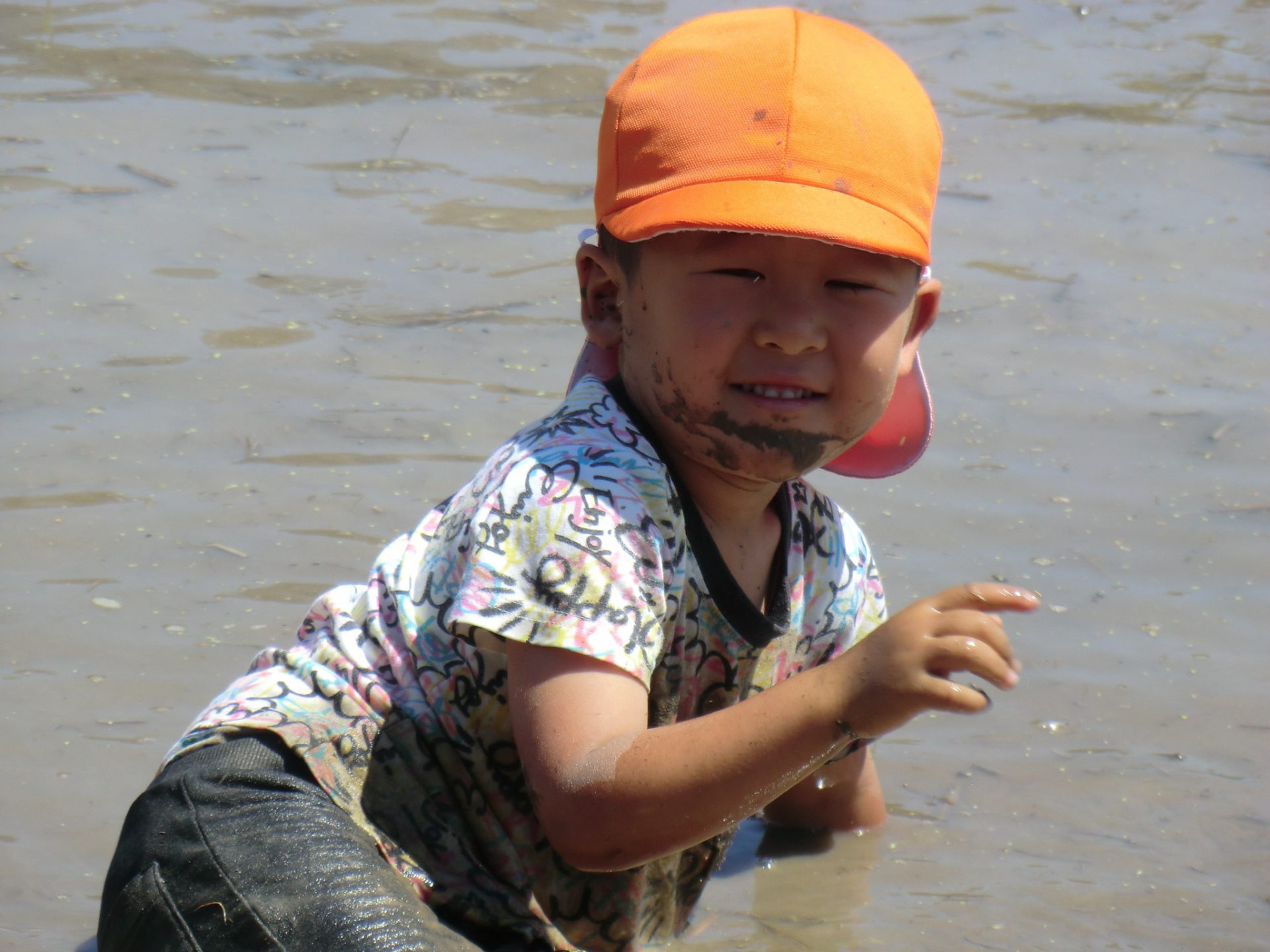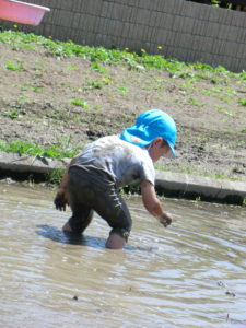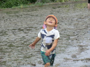 田んぼの泥んこにもすっかり慣れてこんなに遊べるようになりました。
