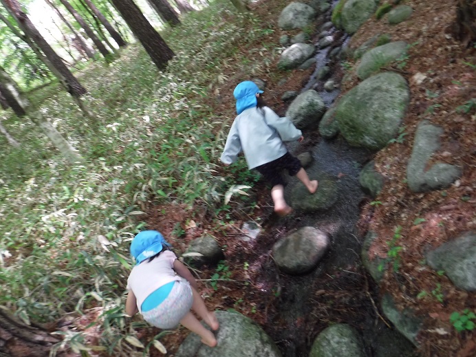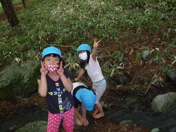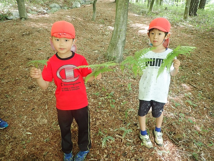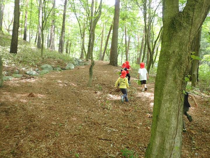 ながたの森へ年中、年長児が揃って散歩へ出かけました。