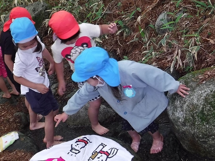 見つけたものは何でしょう?捕まえようと挑戦しています。