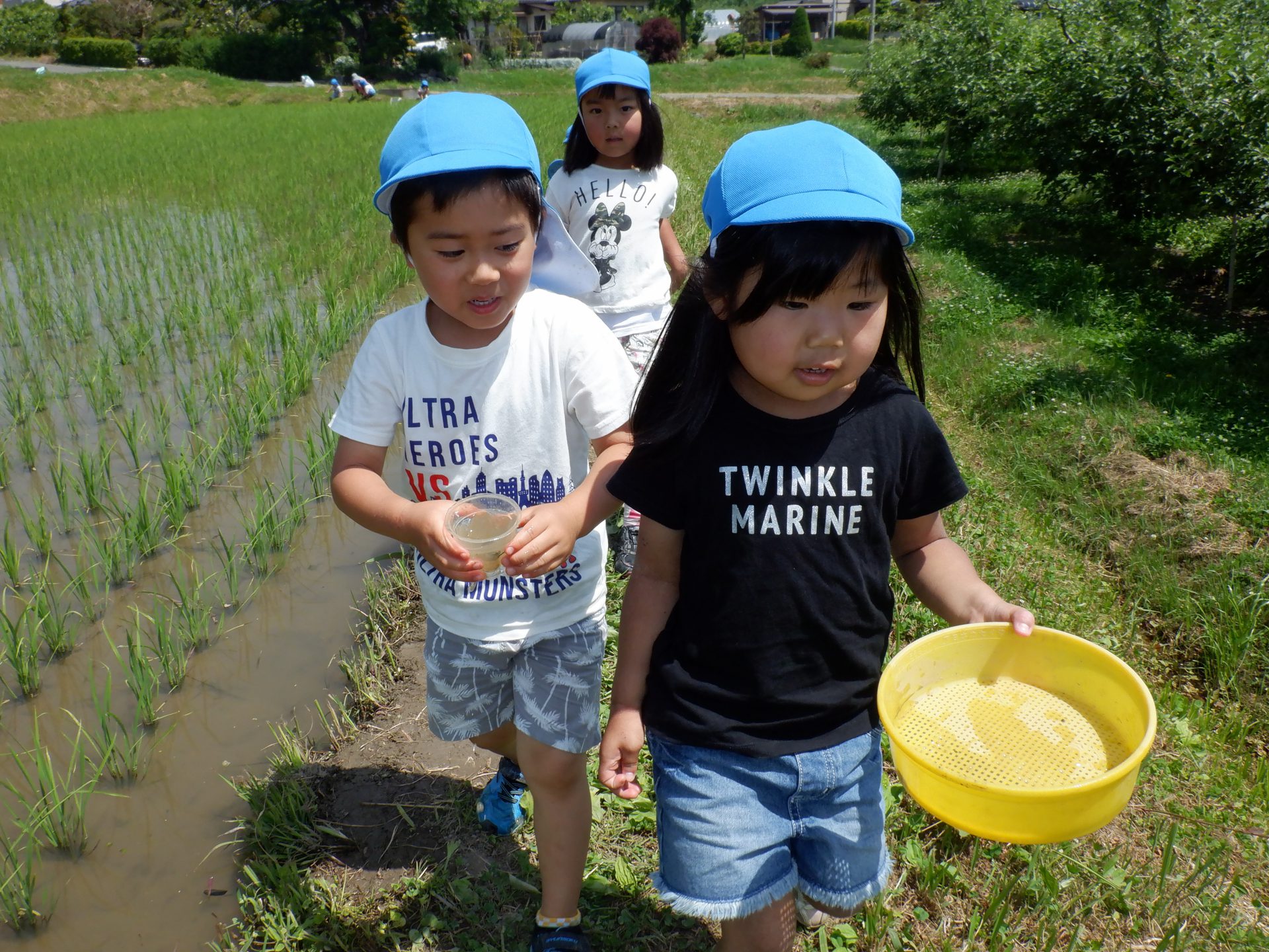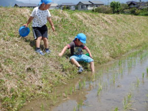 ・園の近くの仲田さんの田んぼにおたまじゃくしを捕りに行きました。