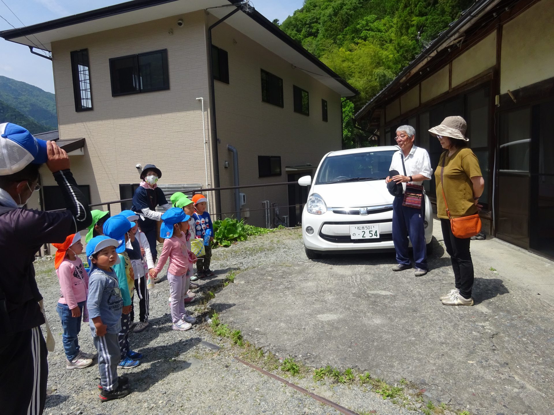 今日は地域の「西澤さん」のお家で「お茶摘み」に招待していただきました。