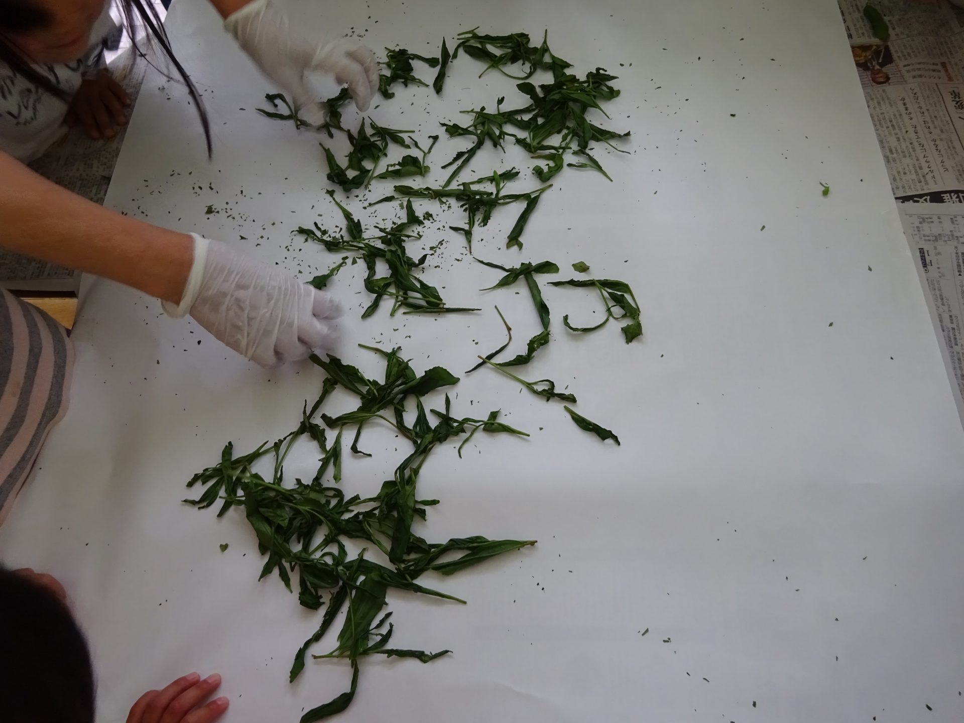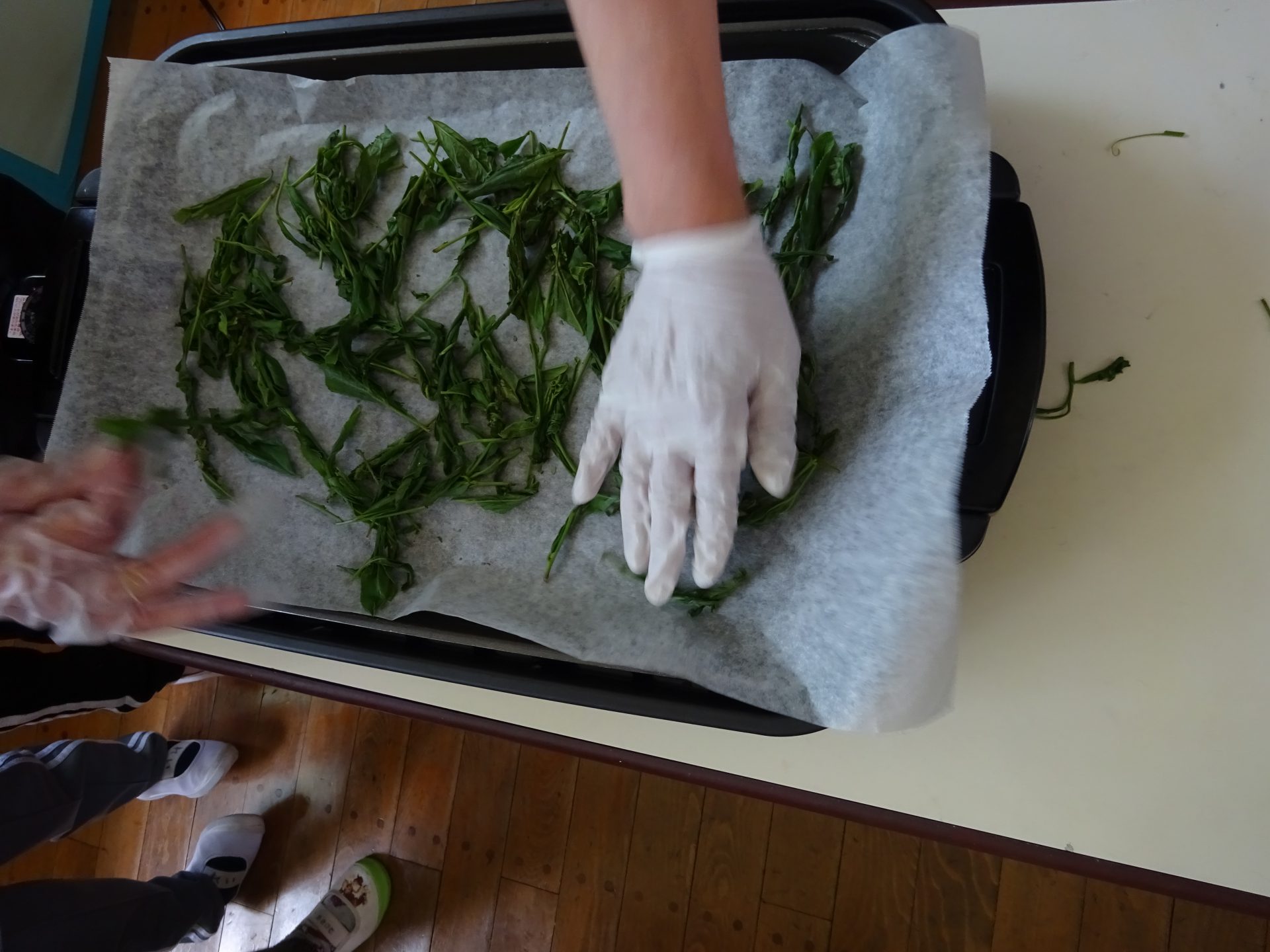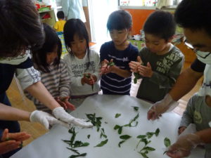 次に、ホットプレートを使って、「手もみ茶」作りに挑戦!